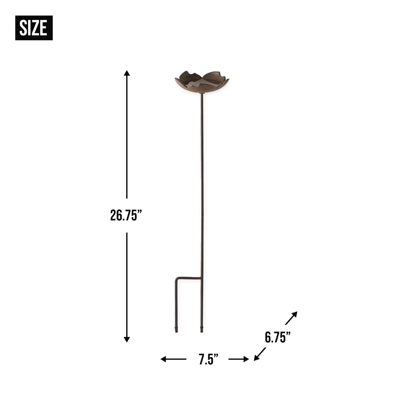 • Bird bath measures 7.5x6.75x26.75 inches and weighs 1.8 pounds.